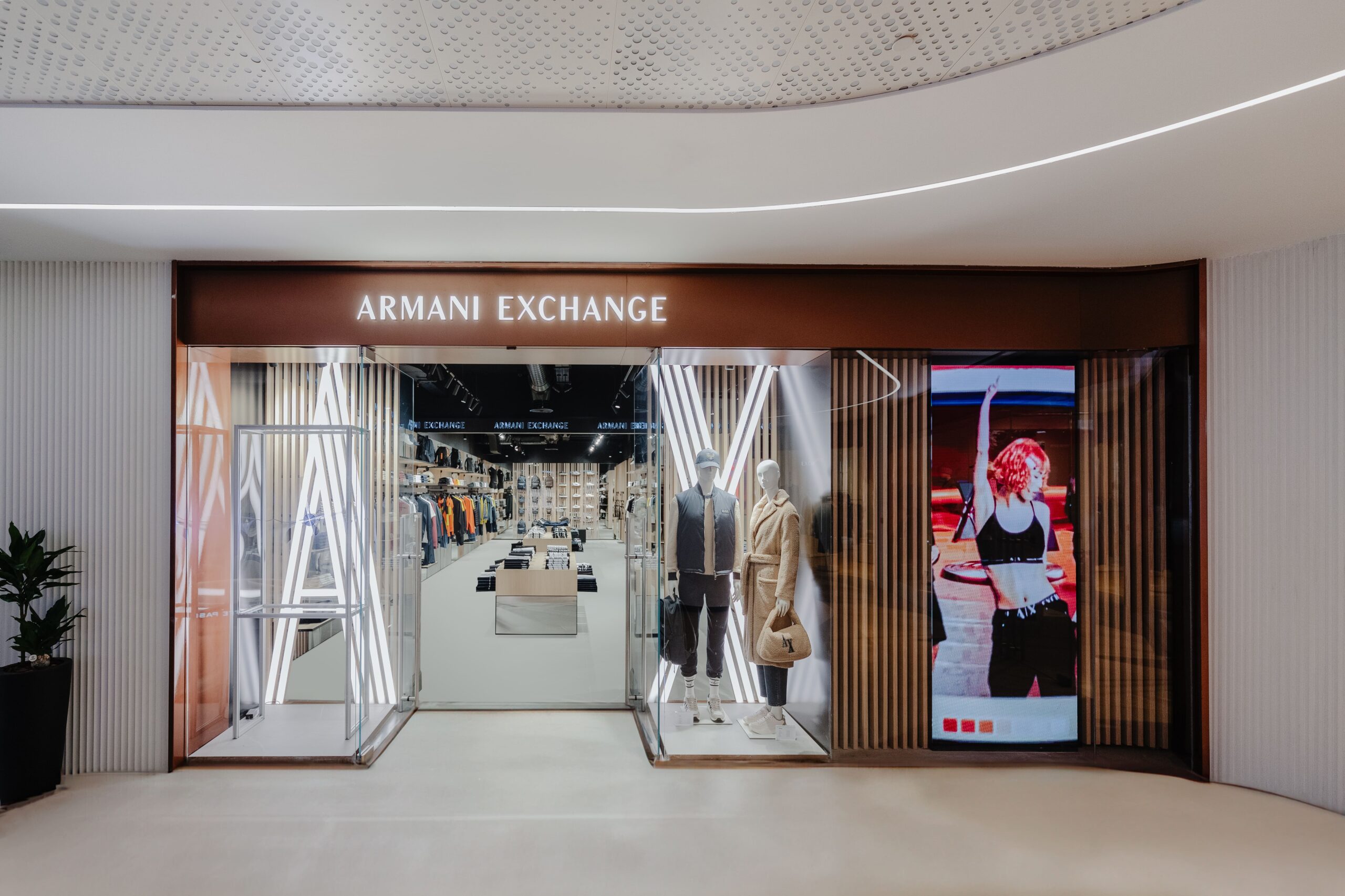 Giorgio Armani’s youthful label, A|X Armani Exchange, captures the heritage of the Armani brand through the lens of its young fashion-forward urban spirit. The 200sqm store, presenting fashion for men and women, introduces the brand’s latest A|X concept. With a clear distinction between sections, the brand brings clothing for daily life as well as when the weekend calls for something extra for parties and other social gatherings.