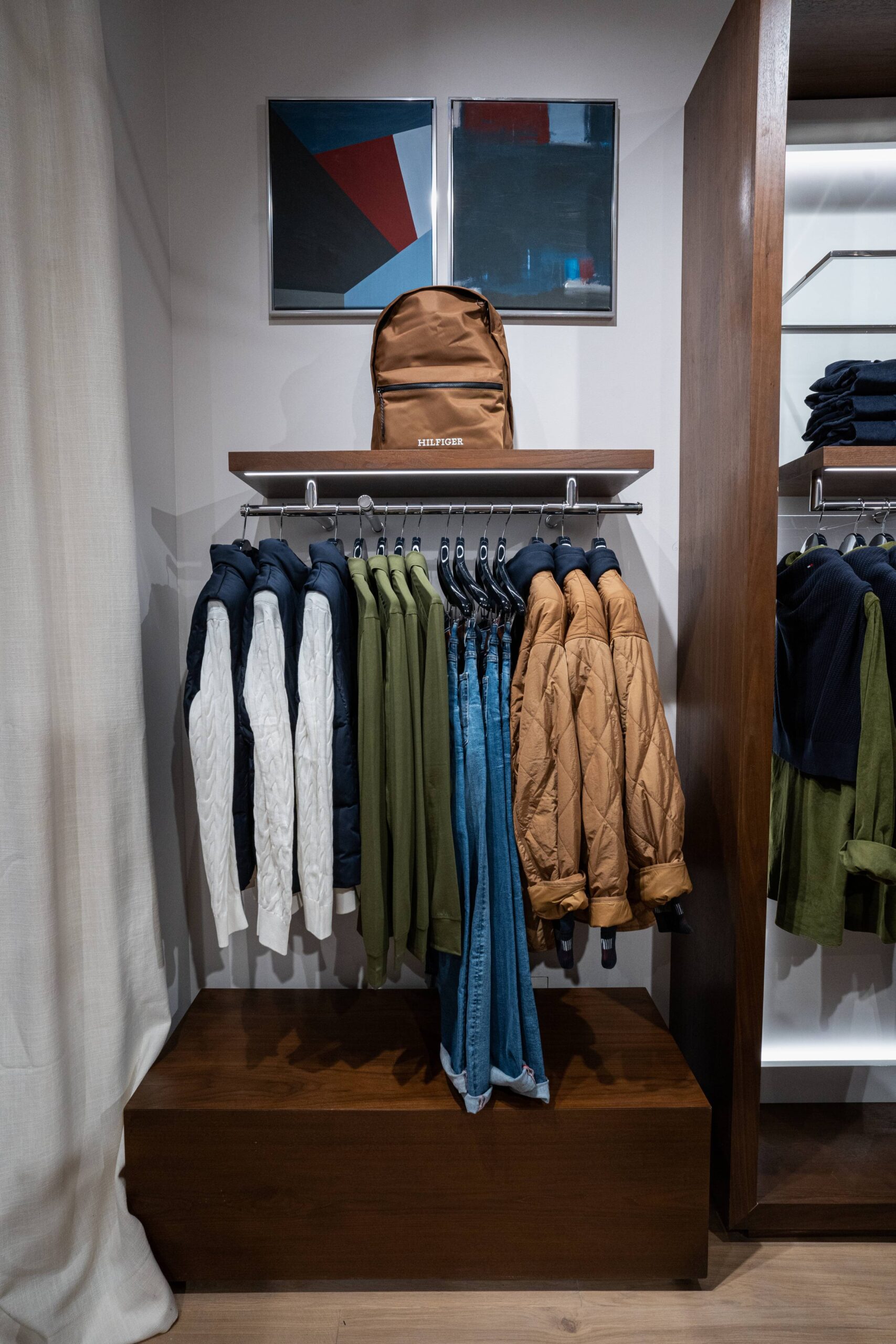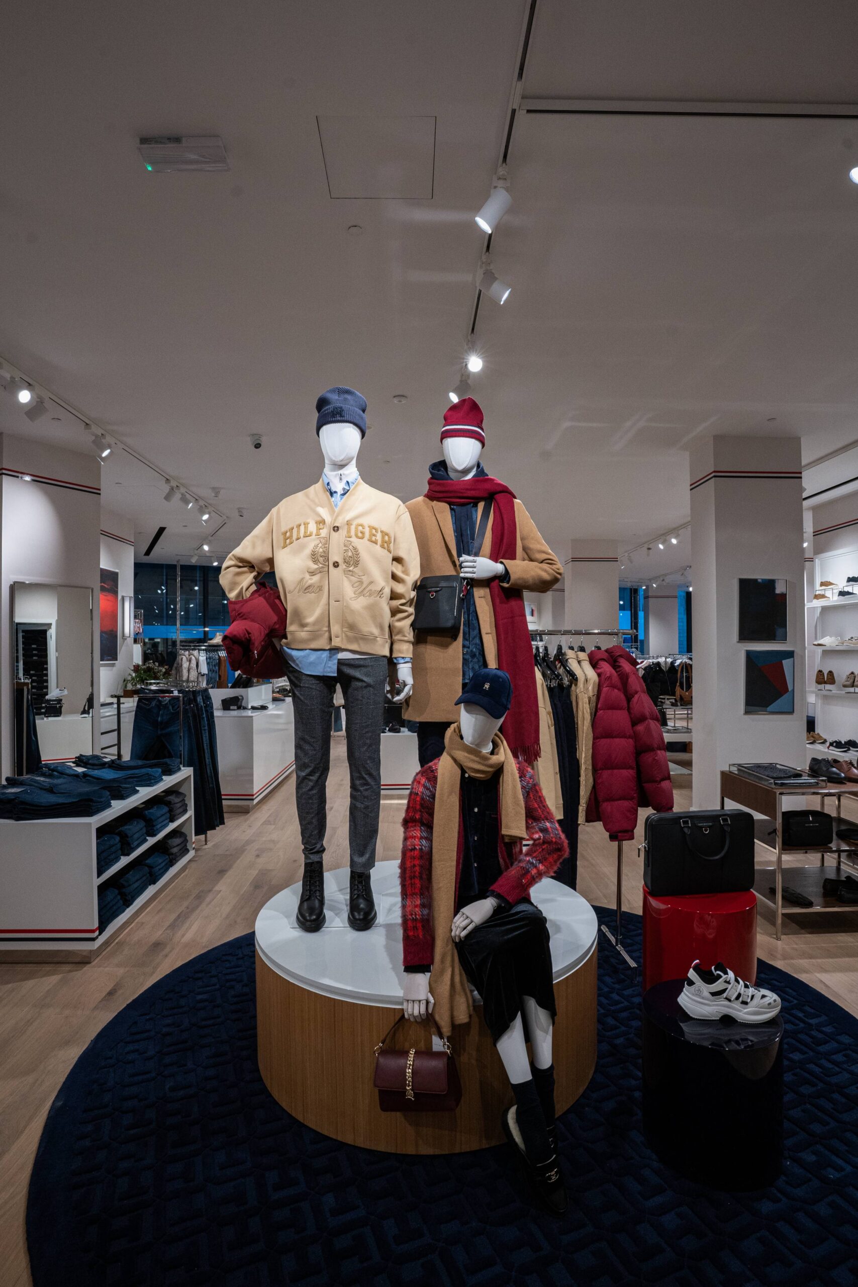 The 255 sqm store design reflects Tommy Hilfiger’s new global retail concept, which fuses the brand’s American heritage with clean, modern finishes and a bright, airy aesthetic. The exterior façade fuses high-gloss white lacquered wood and polished stainless steel with accents in the brand’s signature red, white and blue colour palette. The interior takes a cue from the nautical lifestyle – one of Tommy Hilfiger’s longstanding sources of inspiration.
