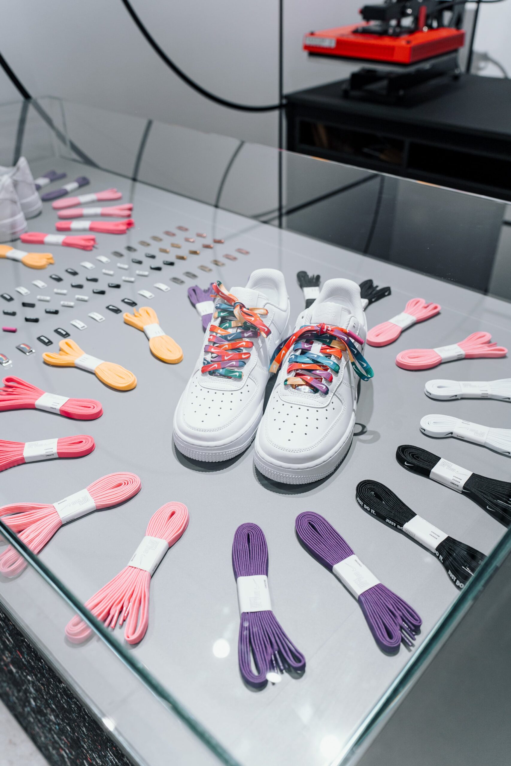 A customisable station is provided for those who wish to purchase different coloured laces and pins as well as to print exclusive designs with the first-ever heat press machine.
