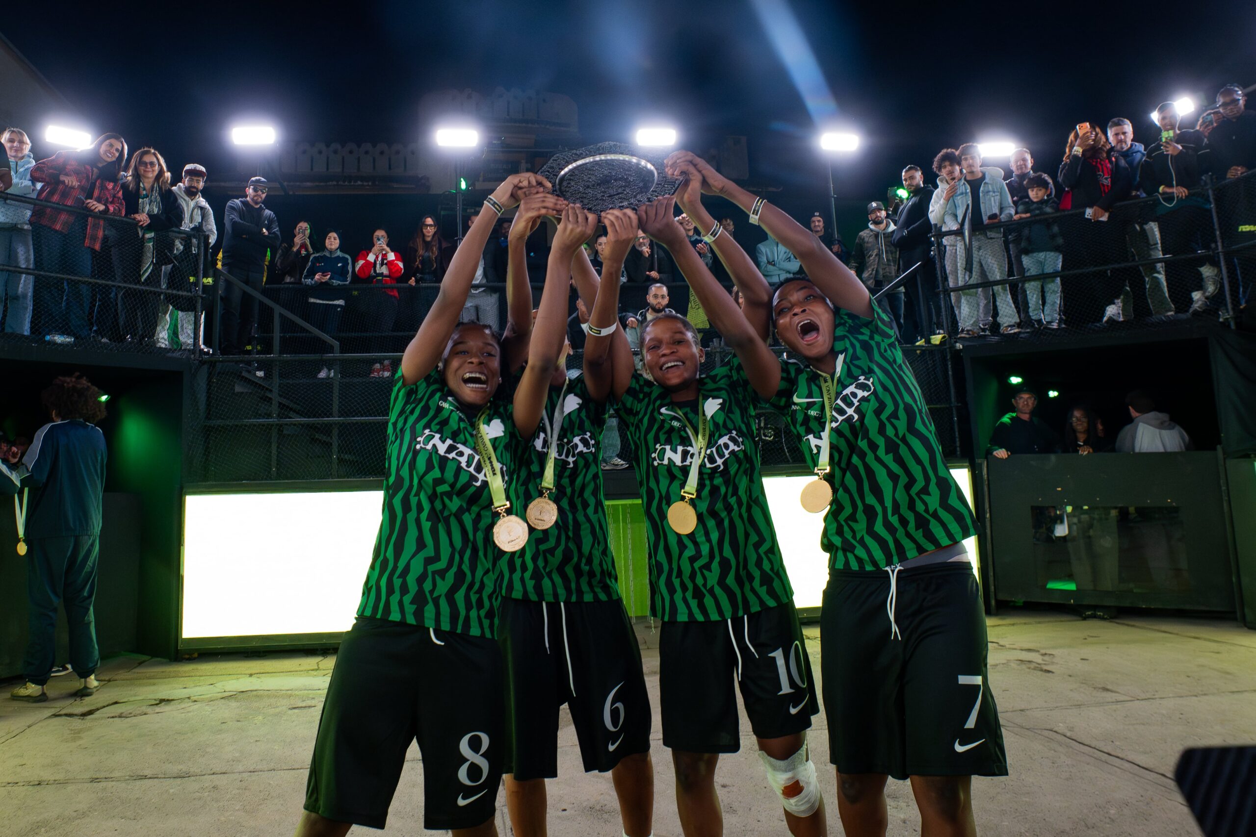 TOMA Casablanca became a high-energy stage for African football culture, bringing together players and teams from Morocco, Nigeria, Ivory Coast, Senegal, South Africa, Egypt, and Angola. The tournament unfolded in three distinct acts. The first saw Casablanca’s best ballers compete in a local Moroccan tournament, with the top three women’s teams and top three men’s teams advancing. The second act featured an international 3v3 showdown between teams from across the continent. The final act, Mad Mode 1 vs 1, crowned an MVP as each team put forward their most fearless player.
